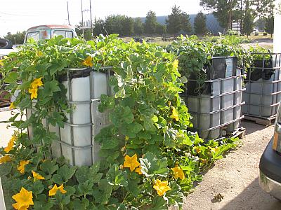 The garden is made from recycled materials. Although planted in June, the garden is growing well with few watering duties. Today (August 21, 2012) we harvested our first produce from the garden. Stop by the office to view the gardens and we will be happy to dicuss how the gardens were assembled and why the watering duties are few. |