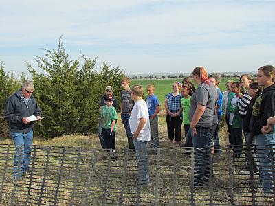 Dave Flemming, County Road and Bridge Supervisor; explains to the 6th graders of St. Francis the benefits of planting a living snow fence. |