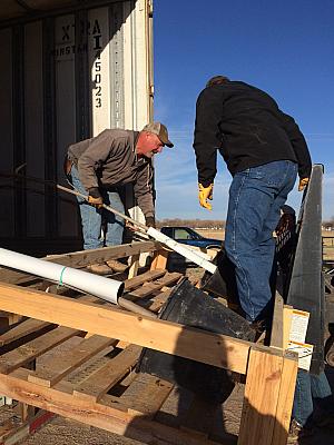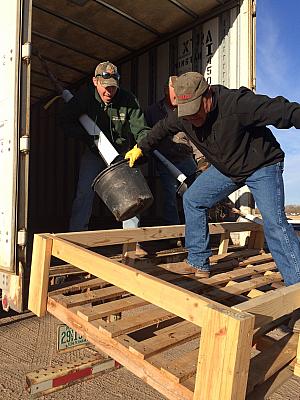 Supervisors unload trees out of the semi for the 2015 Tree Sale. |